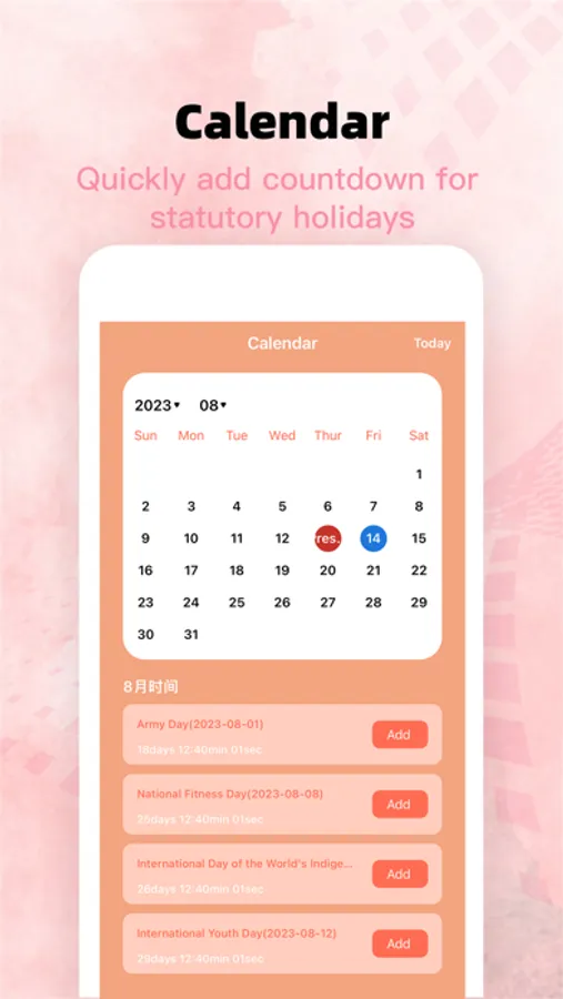 3, Lunar calendar Settings: Add anniversary records or countdown reminders, you can choose lunar dates, support from 1900 to 2100 lunar dates