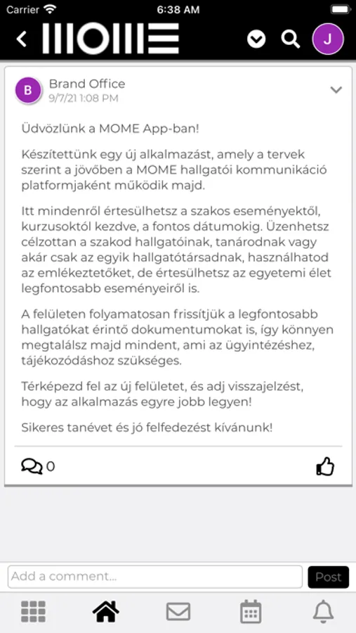 This app is Moholy-Nagy University of Art and Design’s own engagement and communication app and it is designed to enhance communication between MOME and our students.