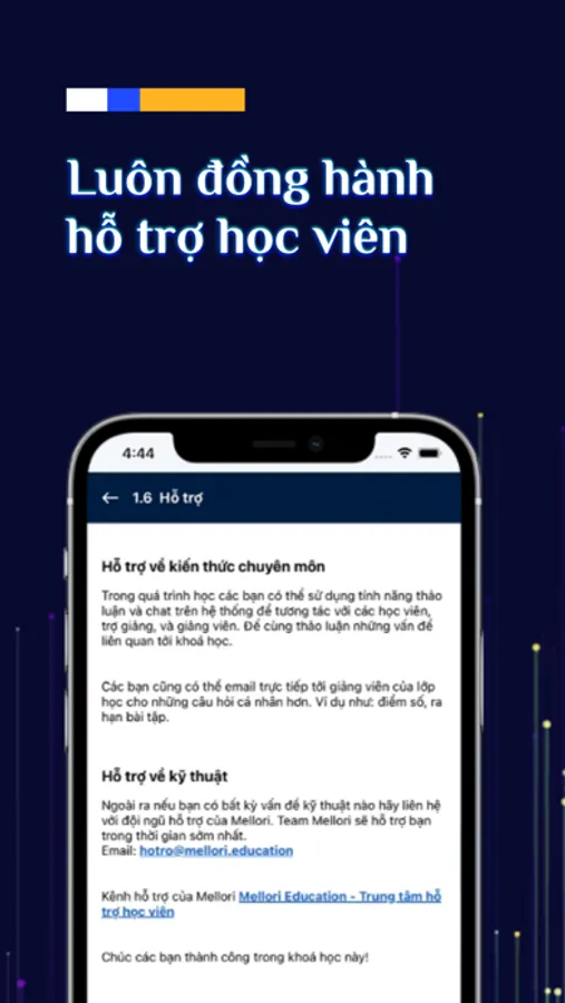 App dành cho học viên học online trên nền tảng Mellori Education.