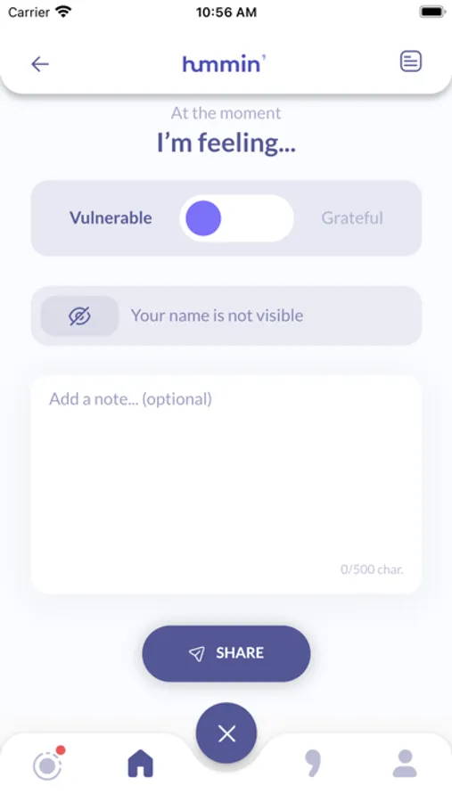 Hummin' helps you track your feelings of gratitude and vulnerability and share them with your peers. Acknowledging and sharing how you feel can improve your emotional wellbeing, increase empathy, and create a more humane workplace