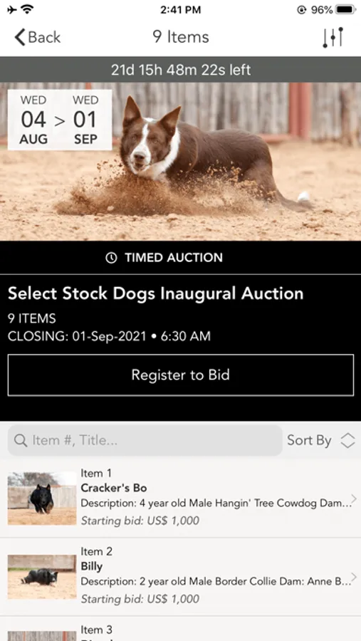 Select Stock Dog Sales is an exclusive auction company for stock dogs of all breeds - Border Collies, Kelpie, Hangin' Trees, Catahoulas, Heelers you name it! With both online and in person auctions happening throughout the year this is your channel to buy or sell great working dogs. Sellers are provided a brand new channel to sell their dogs to a larger audience and buyers have a "go-to" place when in search of a stock dog. Select Stock Dog Sales proudly presents a professional and easy to use auction platform available for everyone. With the Select Stock Dog Sales app, you can preview, watch and bid in our auctions from your mobile / tablet device. Participate in our sales while on-the-go and gain access to our following features: - Quick Registration - Following upcoming lots of interest - Push notifications to ensure you engage on items of interest - Track bidding history and activity - Watch live auctions