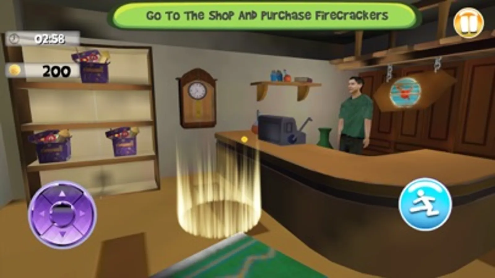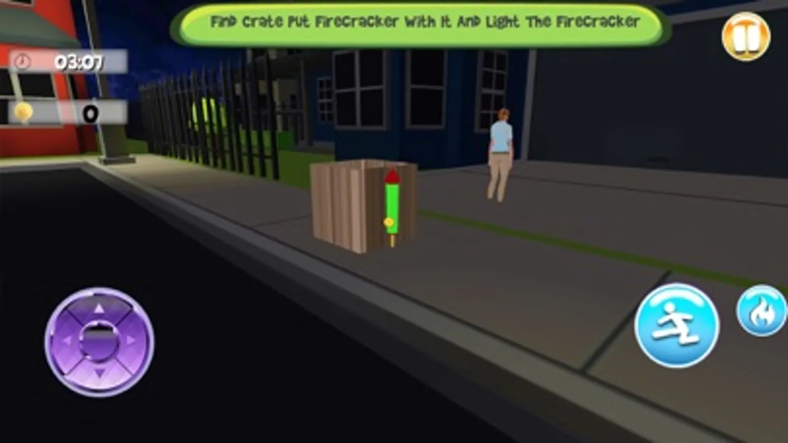 Fireworks Boy Simulator 2 - Dubai Edition in this game the controls in this game are super easy. Move around the city by using joystick on left side of your screen. You can also jump from upward arrow head button on right side of the screen. Walk to the store and stand in the circle to buy firewood for your troubles