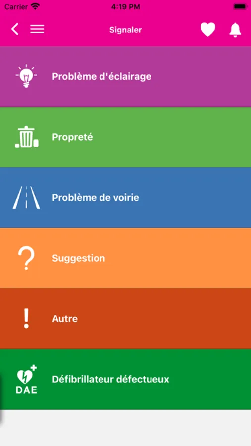- Signalez un défibrillateur défectueux depuis l'application mairie