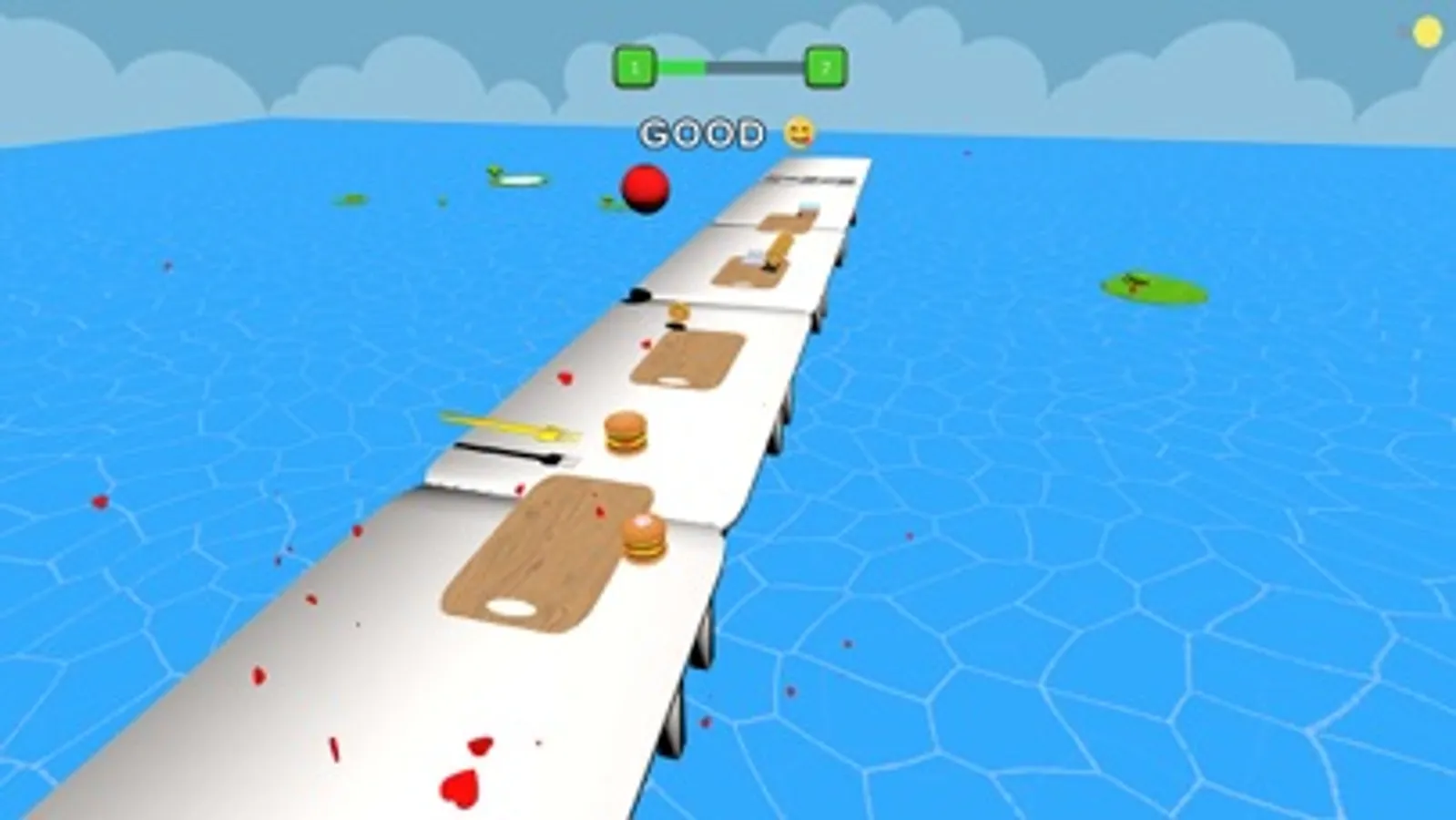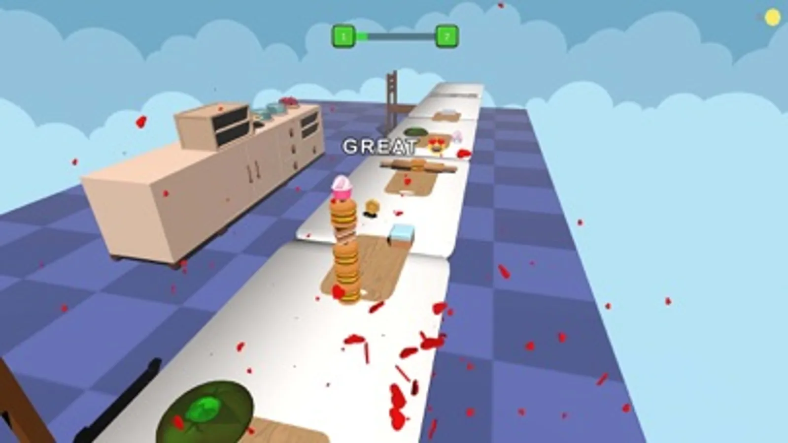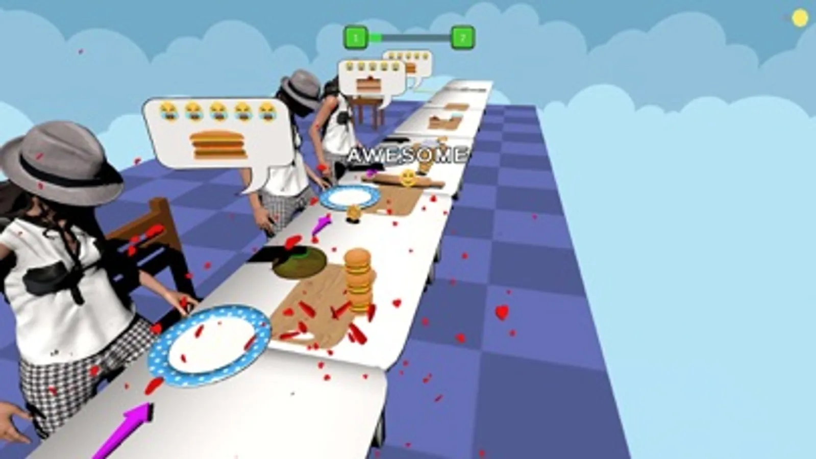 Endless levels, with various food like ice cream, hamburger, cakes, that you can collect and stack up, to race end without falling. Use your time to maneovur through the tables to achieve that. Runner game, with serving to the awaiting customers to make them happy and get the highest ratings from them If you deliver to correct food or beverages.