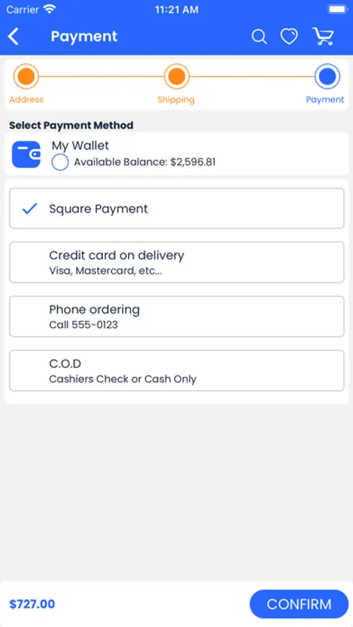 5. To place the order, choose among easy payment options like Cash on Delivery (COD), debit card, credit card.