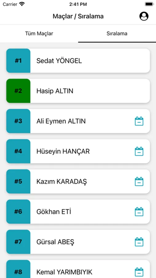 Sıralama ekranı üzerinden en başarılı tenis oyuncularını görüntüleyebilir ve maç teklifi gönderebilirsiniz.