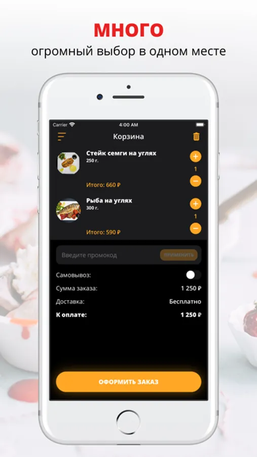 Закажите еду в офис, либо к себе домой с доставкой, и мы уверены, что вы не останетесь равнодушными и станете нашими постоянными клиентами.