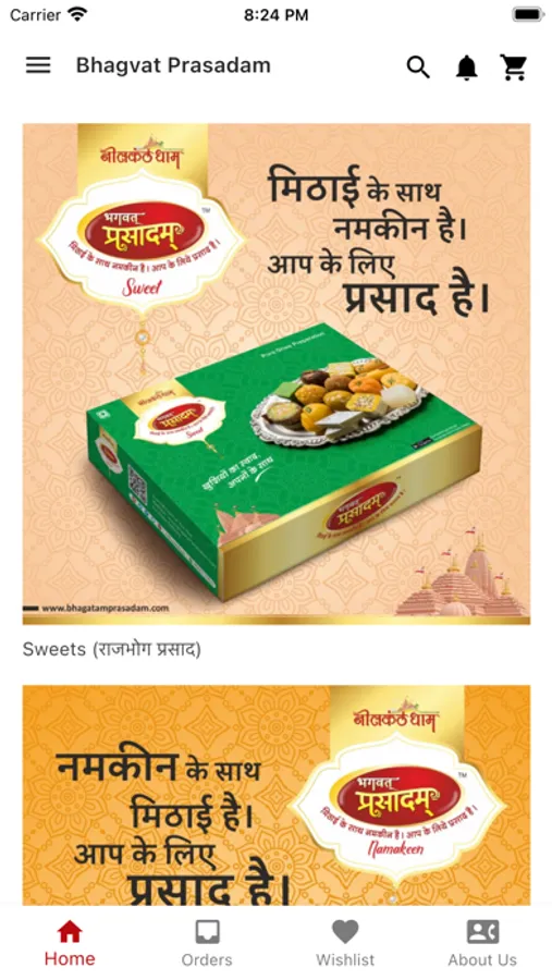 This is one of the leading endeavors of our organization "Shree Swaminarayan Gurukul Rajkot Santhan" that by ordering through mobile application sitting at home, every devotee can take advantage of Sweets and Namkeen offered to Lord Shri Nilkanthvarniji, Shri Radhakrishna Dev, Shri Laxminarayan Dev, Shri Kashtabhanjan Dev etc. at Nilkanthdham Poicha.