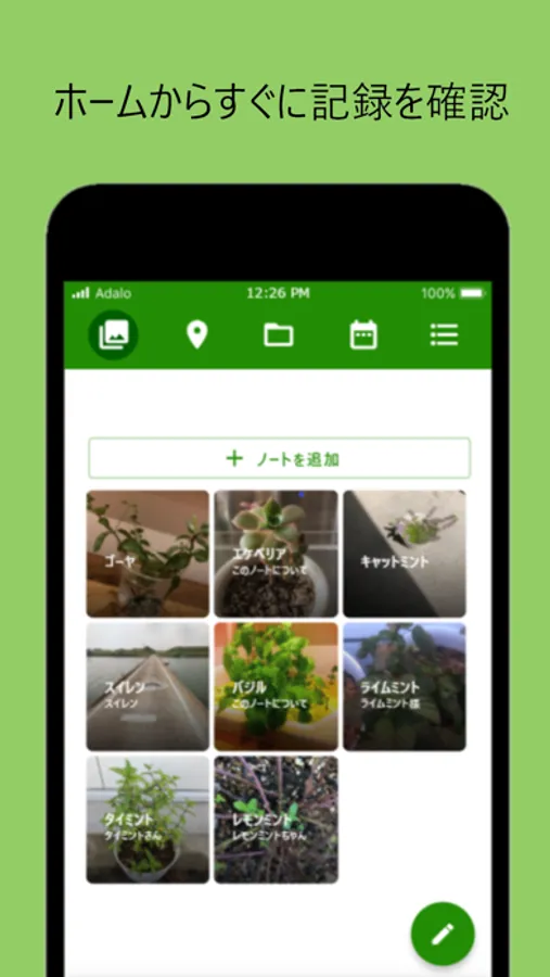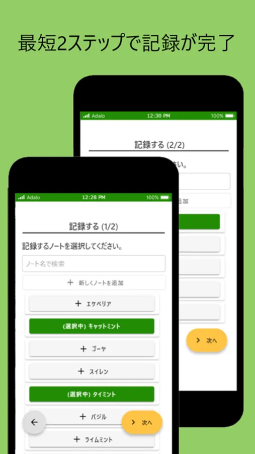 「①ノートを選ぶ」「②作業を選ぶ」の最短2ステップで栽培記録を作成出来ます。