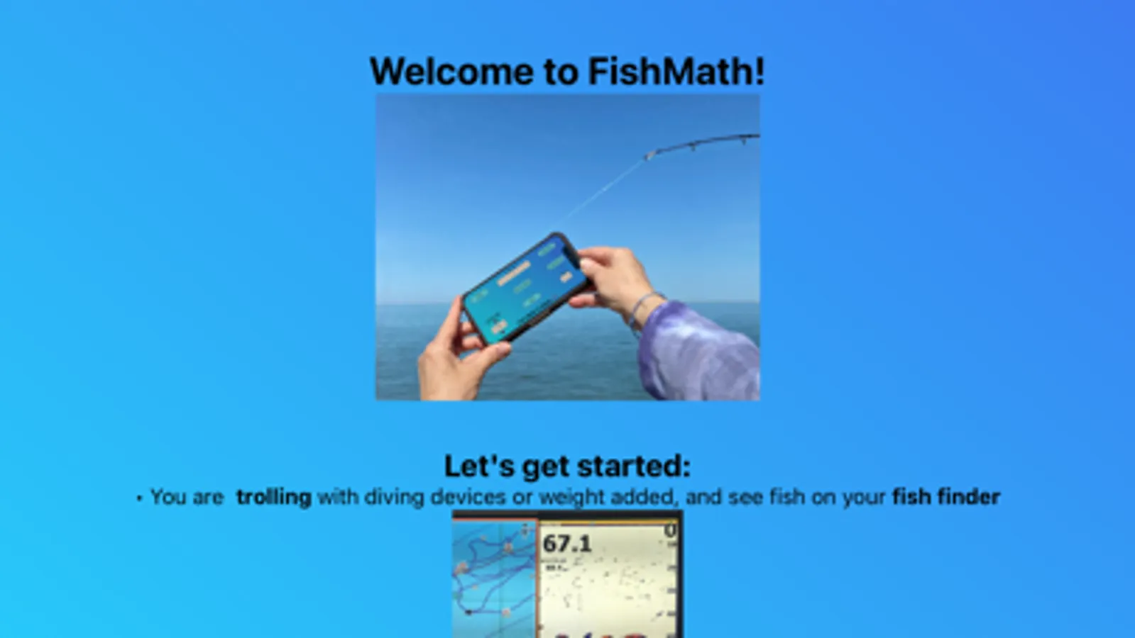 While trolling on a live lake, there are countless variables such as: boat speed, wind speed and direction, waves, underwater current, different lures and diving devices, fishing line diameter, and weight added. FISH MATH™ eliminates all of those variables entirely by using Mathematics; this is the same basic math that effectively lands crafts on Mars.