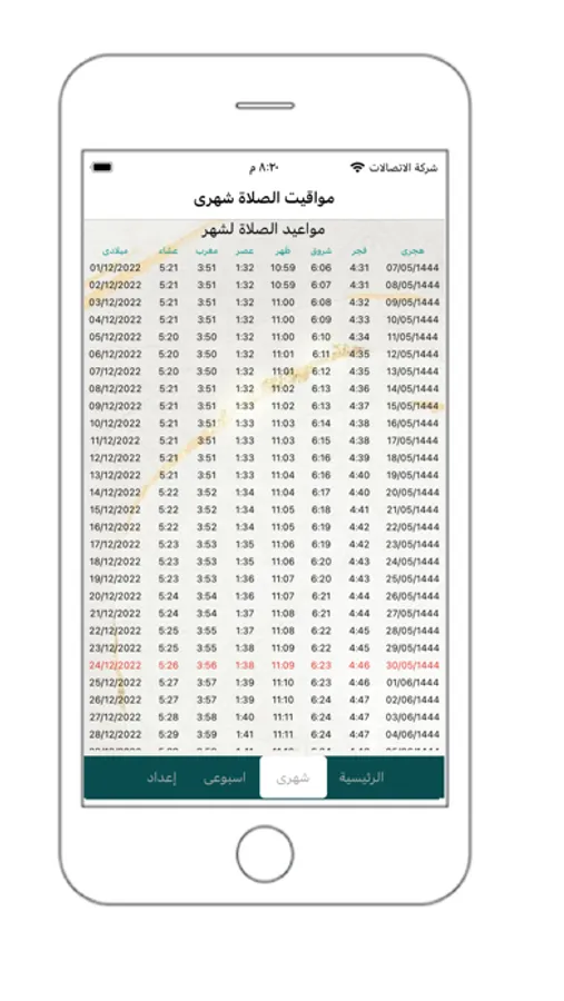 - Daily, weekly and monthly prayer times.