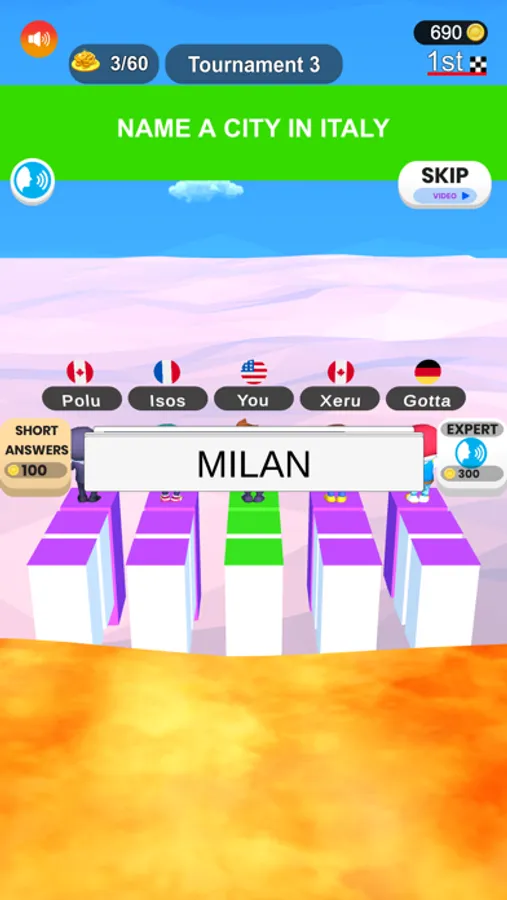 Try longest answer that will help you to survive. Give answer carefully to generate steps and escape from lava.
