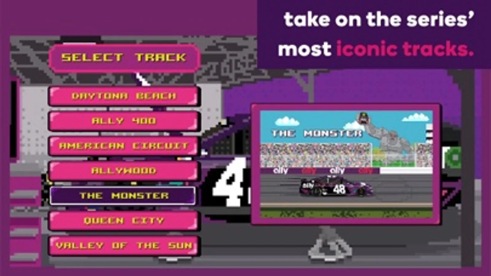Back and better than ever, Ally Racer is the hottest racing game of the summer. Drive as Alex Bowman and race to victory in the Ally 48 across 7 racetracks. Select single race mode or compete across the entire 7-track circuit to rise up the ranks and land on the leaderboards. Select your difficulty level to hone your skills and work to collect as many rewards as possible while watching the clock to get your best time. As a nostalgic 8-bit game, Ally Racer blends the old with the new and is set to become your newest game obsession.