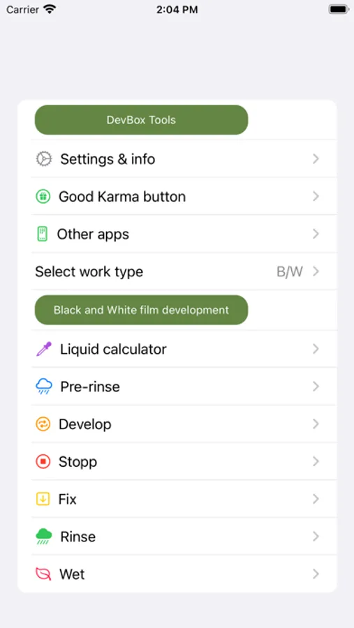 This app contains various tools and counters that are useful when developing black and white film. It can be used with most film developer tanks, some adjustments have made to make it fit with the Lab-box from ars-imago. Neither this tool nor the creator of it are affiliated with ars-imago or the Lab-box in anyway.