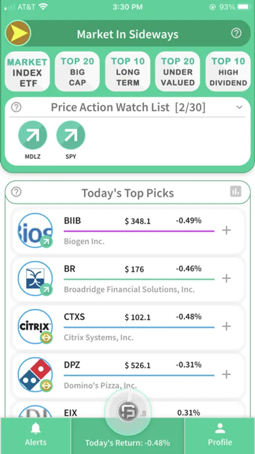 - Today's Top Picks, Top Market Index ETFs, Top Big Caps, Top