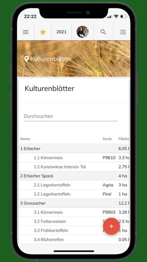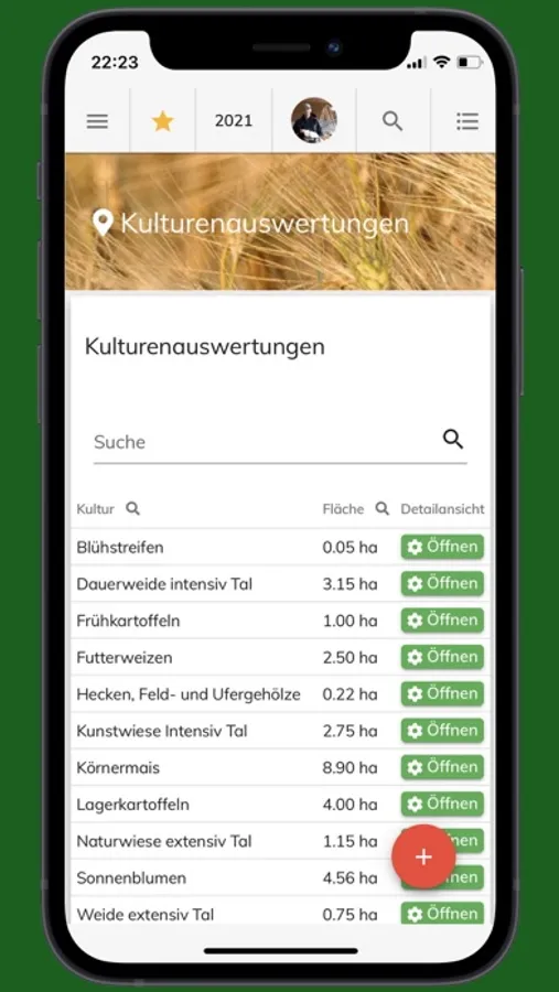 Erstellen Sie ein übersichtliches Verzeichnis mit Ihren Parzellen und den darin enthaltenen Kulturen. Im Parzellen- und Kulturenverzeichnis haben Sie jederzeit die Übersicht über Ihre Flächen.