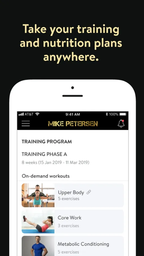- Get push notification reminders for scheduled workouts, on-going education and support