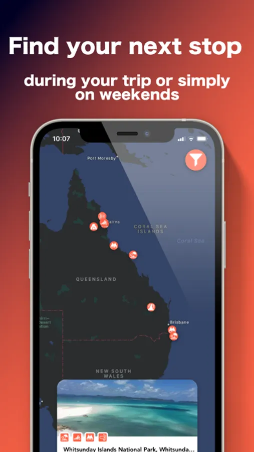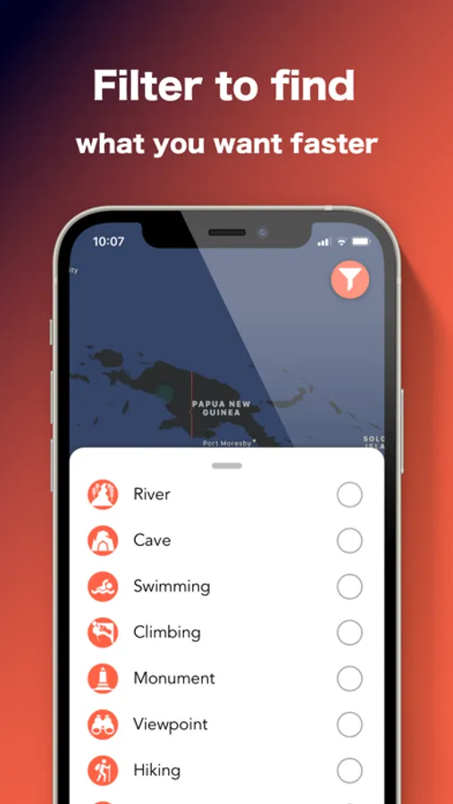• Filter all the spots with what you like (hiking, beach, jungle ...)