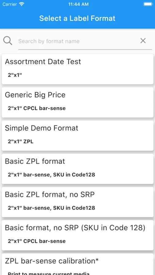• Choose from a list of custom label formats