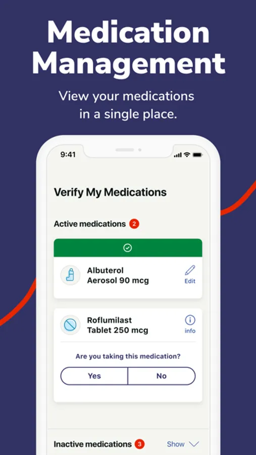 View your medications in a single place regardless of pharmacy. Indicate why you are taking the medication and confirm your dosage.