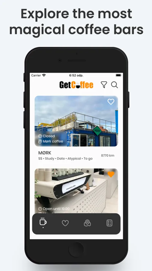 With the GetCoffee application, you can effortlessly search for coffee bars in your area. Project GetCoffee consists of a database with only premium coffee bars. Only the coffee bars with something special about them are inserted into this database.