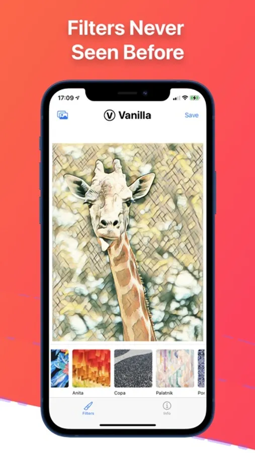 Enhance your photos with Vanilla Filters and give them an artistic touch. Share with your friends and family and have fun!