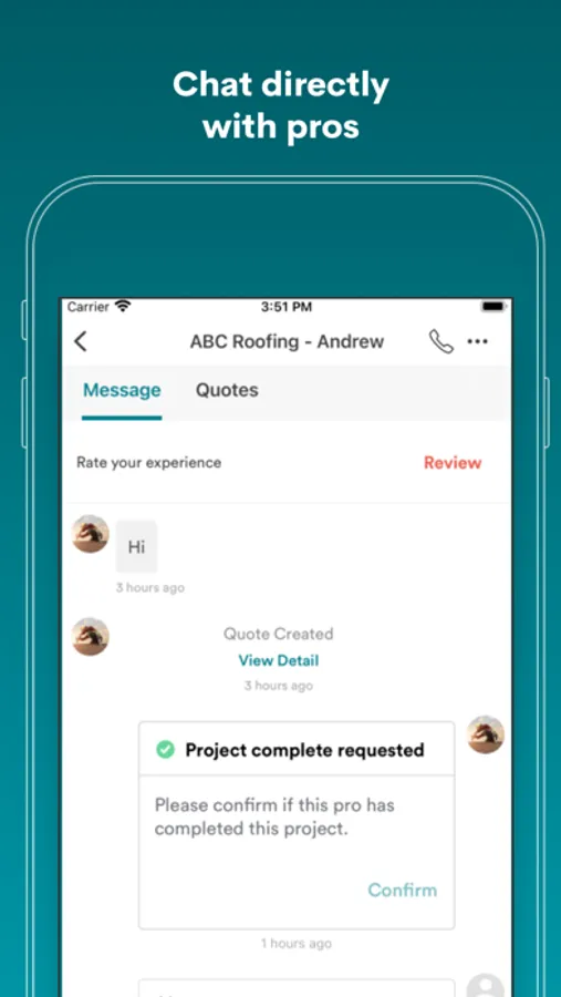 As a customer, post your project within seconds from your phone or our website, and start receiving quality bids almost instantly. You’ll receive free estimates from your local pros. Our unique rating system provides a standard benchmarking system across the board. Next step is to hire the perfect pro who fits your unique need, and budget.