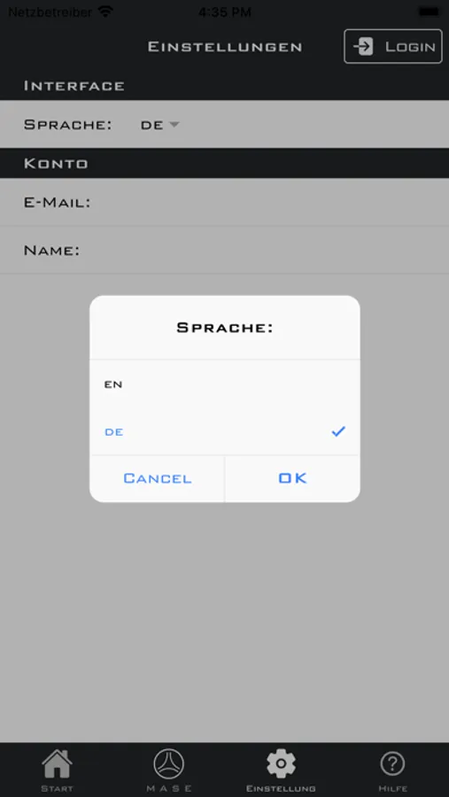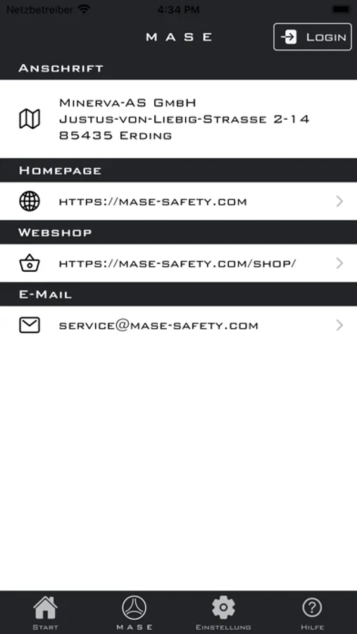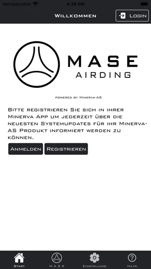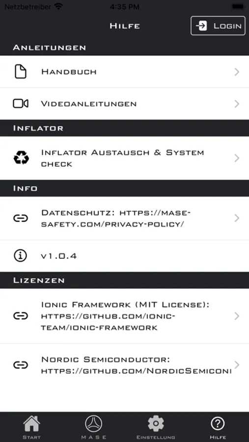 Mit der App erfolgt die Registrierung des Airbag-Schutzsystems. Sie bietet Hilfe zum Gebrauch, Kontaktdaten zum Hersteller und Informationen zum Betriebszustand.