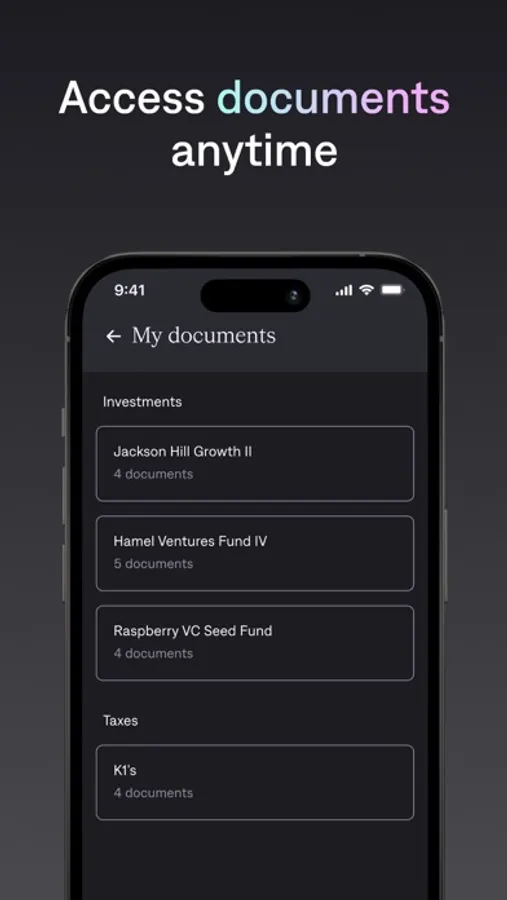 Whether your funds are with Carta, AngelList, Standish, or another provider, say goodbye to the hassle of multiple portals and endless PDFs.
