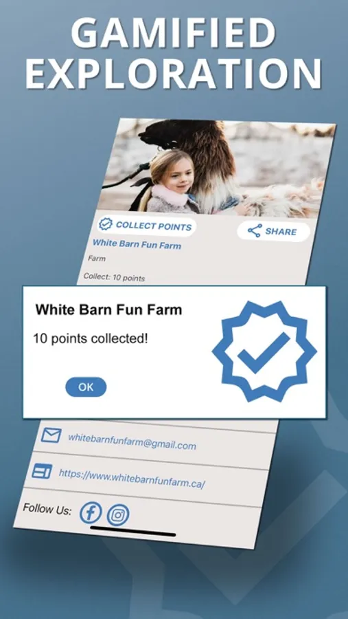 Many locations are assigned a point value, which can be collected when you are within GPS range of a location and have a connection to the internet. Pushing the “Collect Points” button while physically visiting a location will add the location’s points to your point total. To keep earning points, explore more locations. You can track your point total on Your Account page.