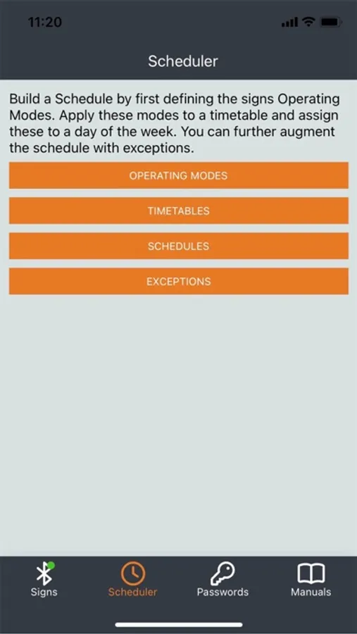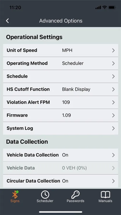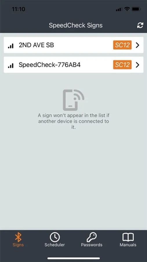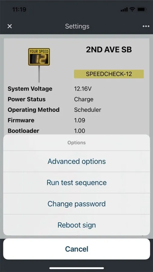 The app uses Bluetooth® Low Energy (BLE) wireless technology to connect to the SPEEDCHECK-12 sign. Once you’ve installed and powered up your sign, simply boot up the app and it will automatically scan for nearby SpeedCheck devices. Select your sign and program your desired settings, including device name, speed parameters, password, and others. Each setting is immediately updated on the connected sign. When you’re finished, just exit the app and your sign is ready and operational.