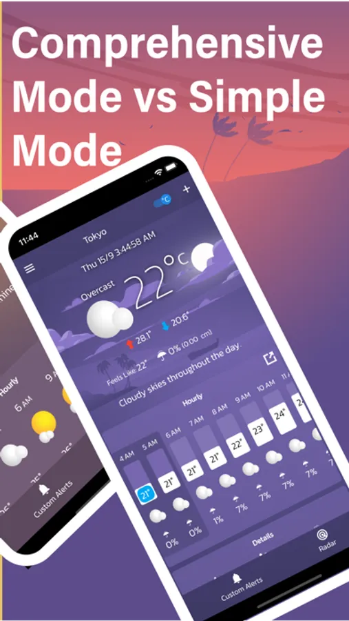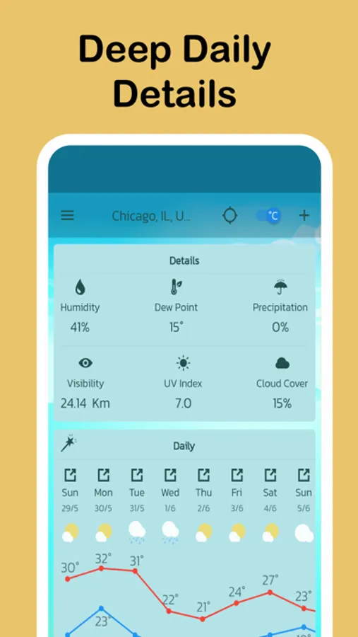 - Detailed 24 hours temperature and conditions