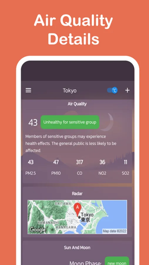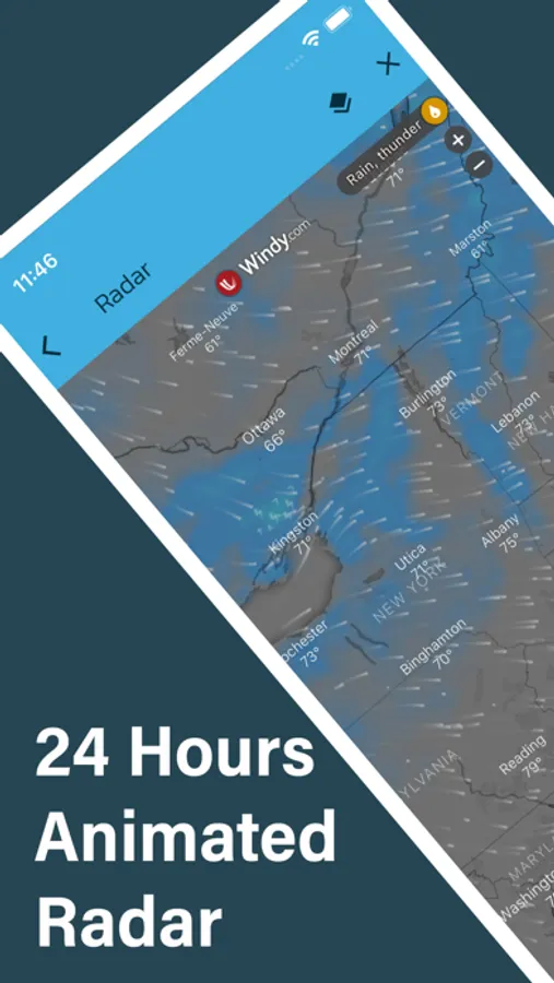 - Weather radar map for temperature, wind, Rain, Snow, Pressure, and clouds