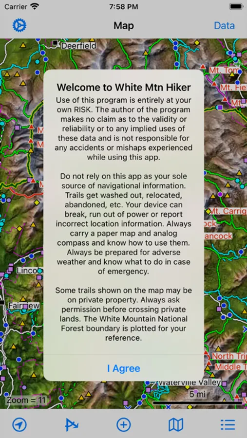 • Set your own POIs and attach photos to them or take new photos without leaving the app. Photos can be annotated. User POIs can be emailed to anyone the user likes. Do not rely on this as a safety feature as it only works when you have a cellular data connection and there are many parts of the White Mountains without reliable cell service!