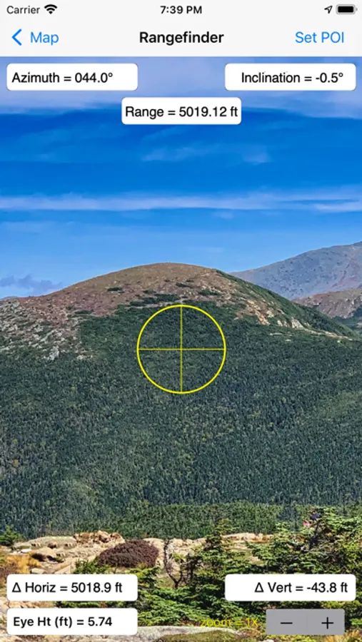 • An innovative rangefinder uses the builtin DEM along with the device compass and accelerometers to give you the distance and bearing to a feature simple by pointing the device camera at it. The accuracy of this feature is subject to the accuracy of the device magnetometer, which is easily affected by magnetic fields.