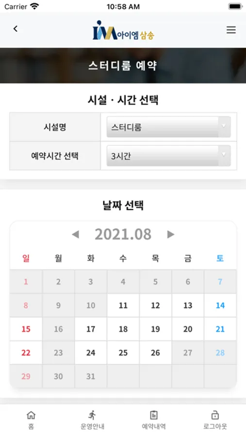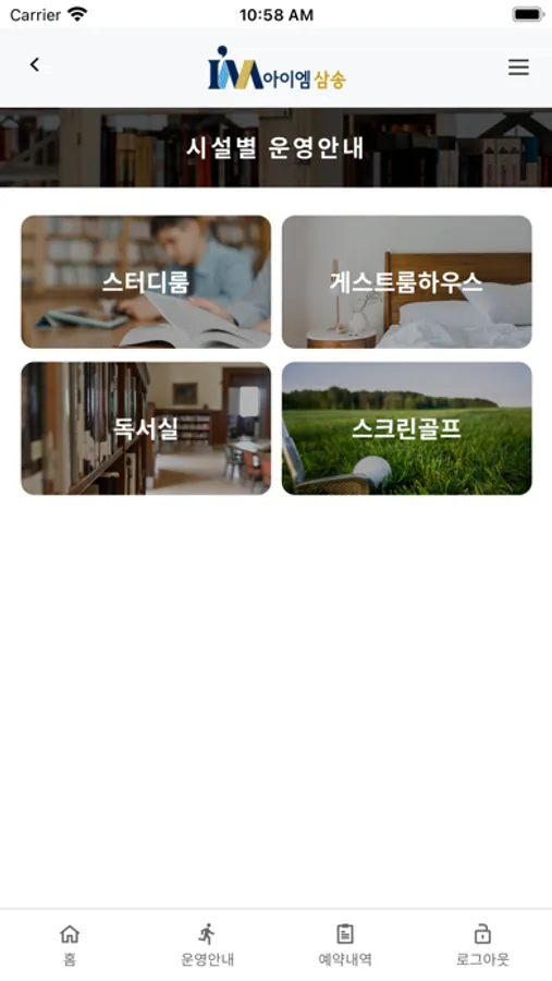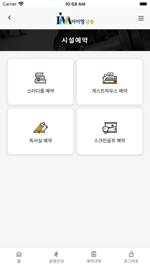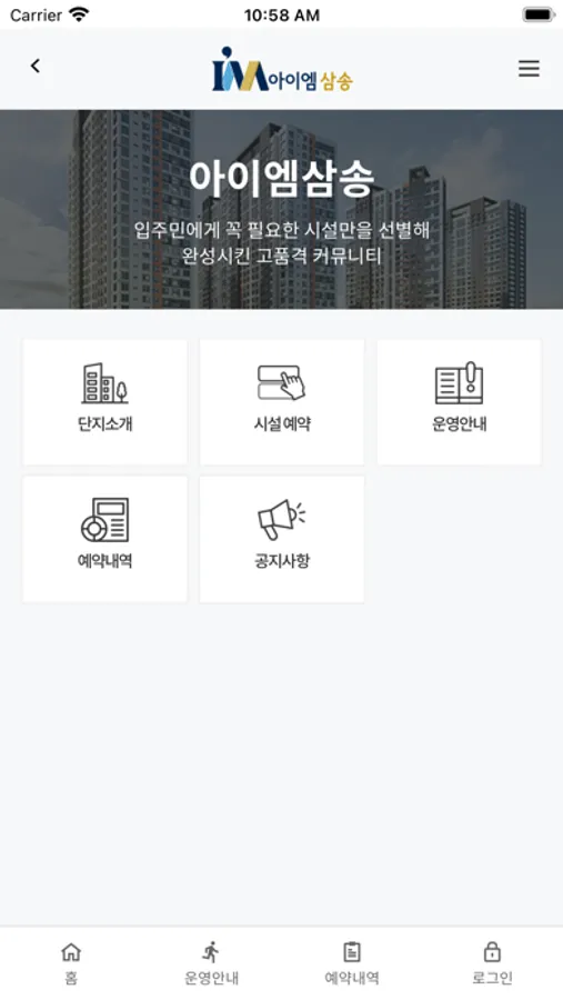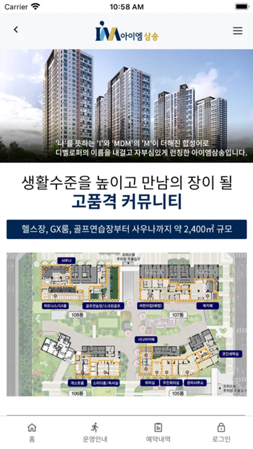 아이엠삼송은 입주민분들께서 시설예약, 강좌예약, 이용내역을 확인 할 수 있는 서비스 입니다