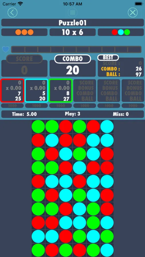 A puzzle game where you can customize the puzzle to your liking and erase the balls of the same color vertically or horizontally.