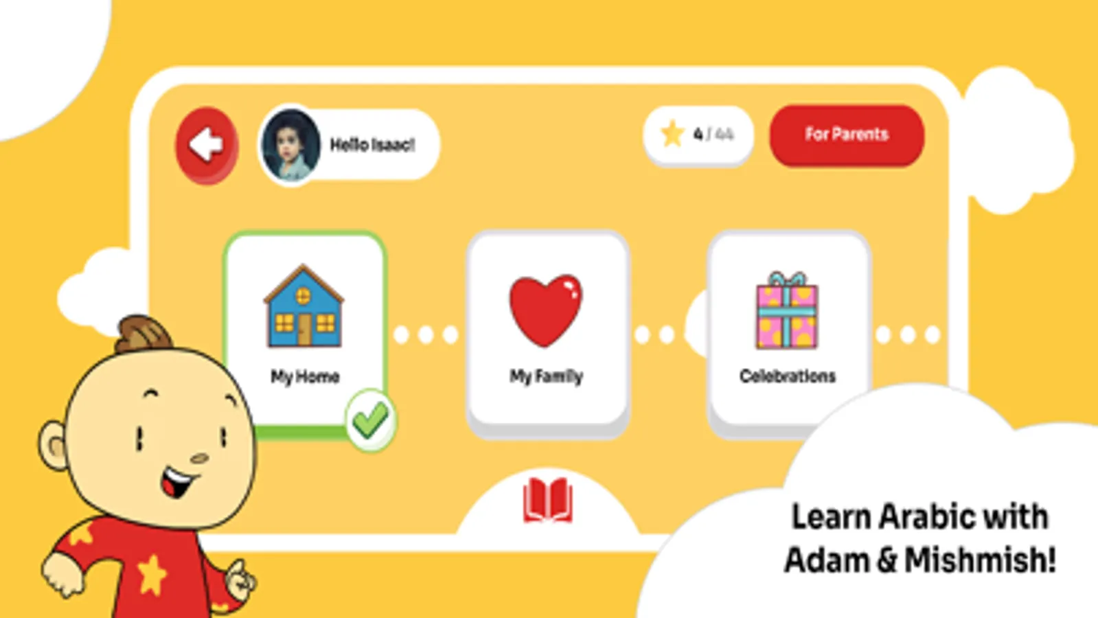 Your child will join their favorite Arab characters - Adam and his favorite toy, Mishmish - in an unforgettable adventure and learn Arabic in simple steps from the comfort of their home. Our app will help them build a strong foundation and pave the way for future advances.