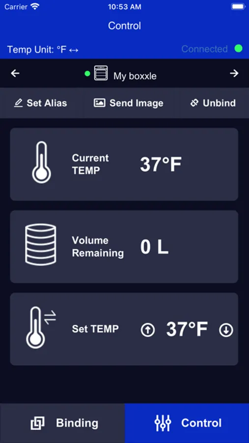 The Boxxle app allows you to remotely control the temperature of your Boxxle Dispenser, monitor beverage usage, volume remaining, type of beverage and much more.