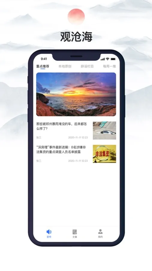 观沧海是一款针对舟山市打造的智慧信息管理平台,本市权威资讯实时发布,发挥新媒体的宣传功能,实现数据信息上报。