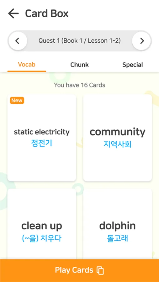 증강현실(AR)기술을 이용해 다양한 3D 오브젝트와 인터랙션을 하며 재미있게 단어와 청크 학습을 할 수 있습니다.
