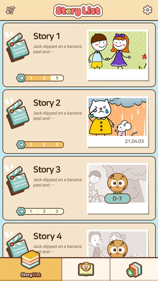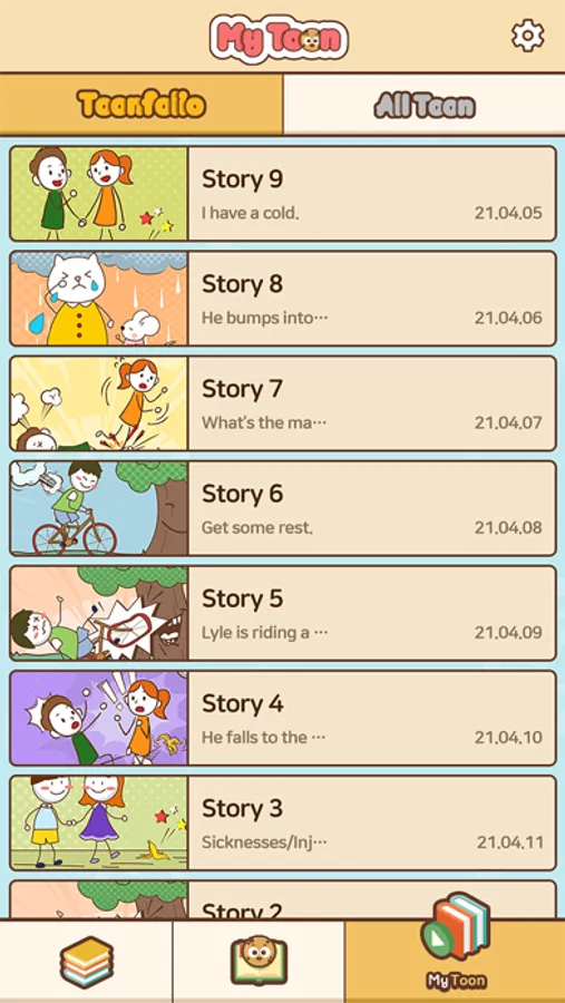 - Toon 형식으로 제공되는 스토리와 그림으로 이야기 문맥을 이해하며 재미있게 학습할 수 있습니다.
