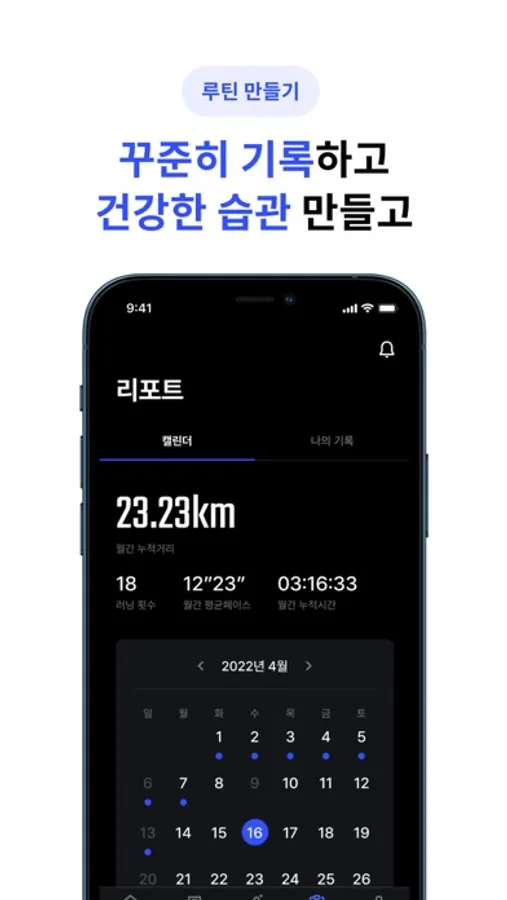- 캘린더에서 지금까지 달린 모든 기록을 한 곳에서 확인할 수 있어요.