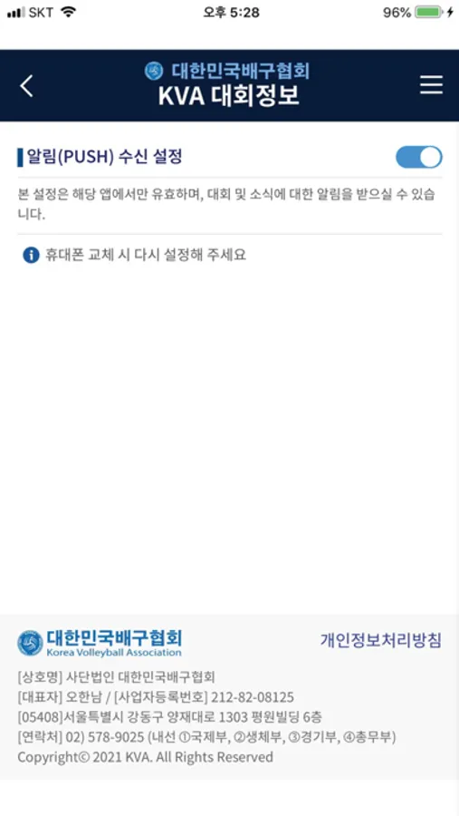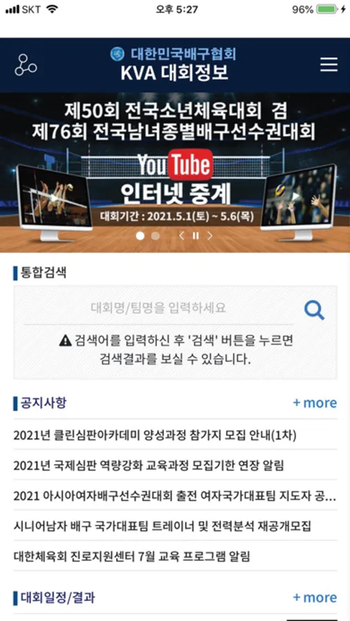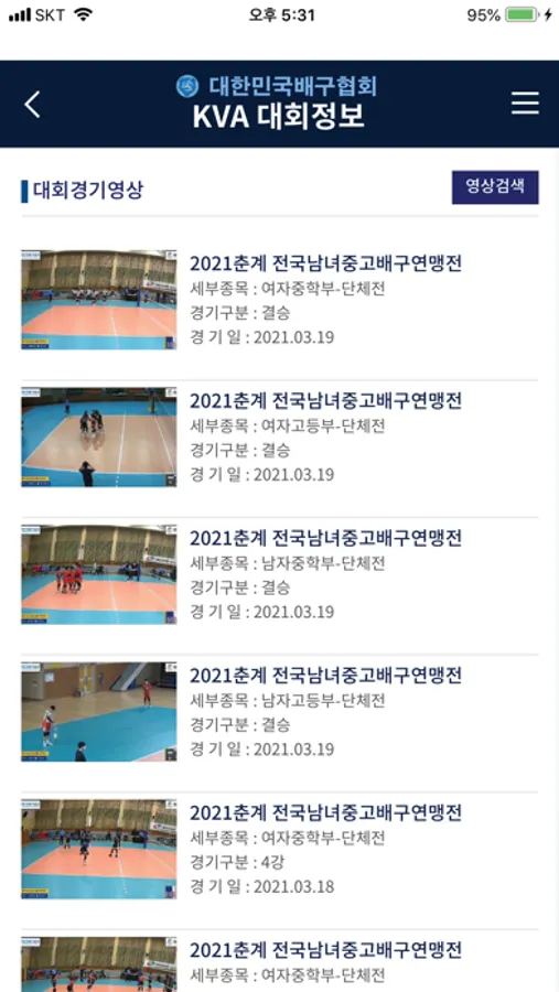 배구 통합모바일 시스템 전용애플리케이션 'KVA 대회정보'
