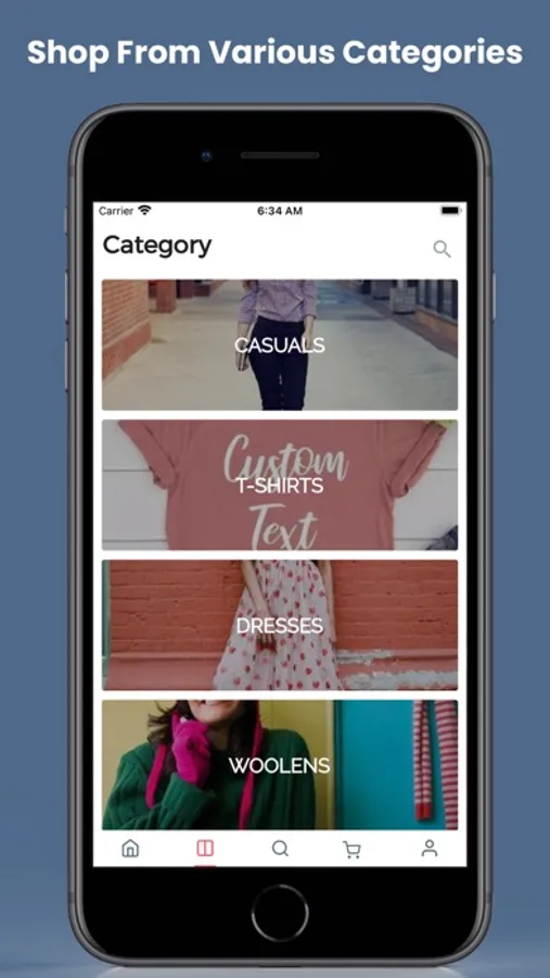 Simply download the app on your device and create an account for yourself. Now, you will be taken to the Home Screen where you will find links to all category products.