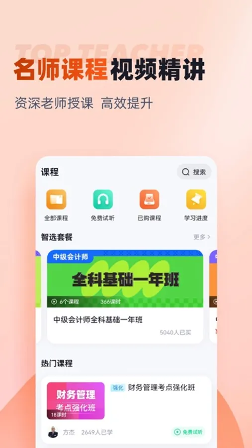 中级会计题库新增搜题功能,中级会计考试中的疑问一搜便知,更支持语音和拍照搜题。