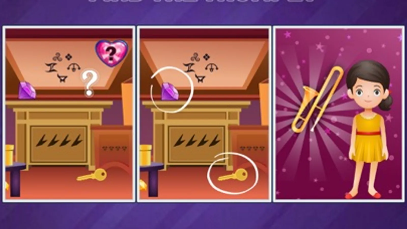 If you are a fan of the classic point and click games or enjoy good hidden object games - this one is exactly what you need! The little girl anticipates her firs music lesson at school, but she has lost her trumpet and is very upset. Use your logic and help her find a musical instrument by solving dozens of fun and challenging puzzles across many colorful levels. Embark on an exiting adventure, where you have to search for hidden objects, escape the room and solve tricky brainteasers. Are you ready?