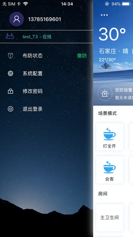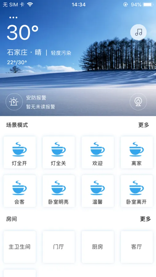 我们的应用程序可以通过自定义场景功能,一键设定各个点的报警设备的状态,从而即使在家的时候,家庭的边界区域任然是被保护中。而不需要繁琐的设定。