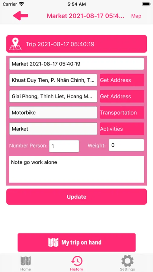 Show the location-history of the device in a date,hour -range ,activity you enter