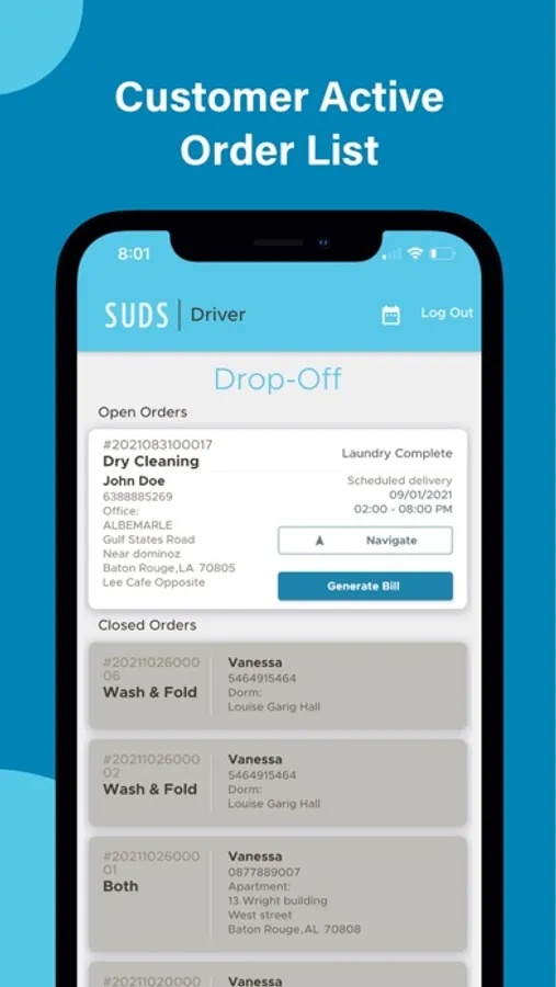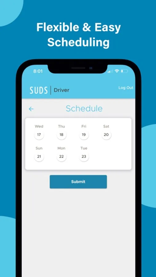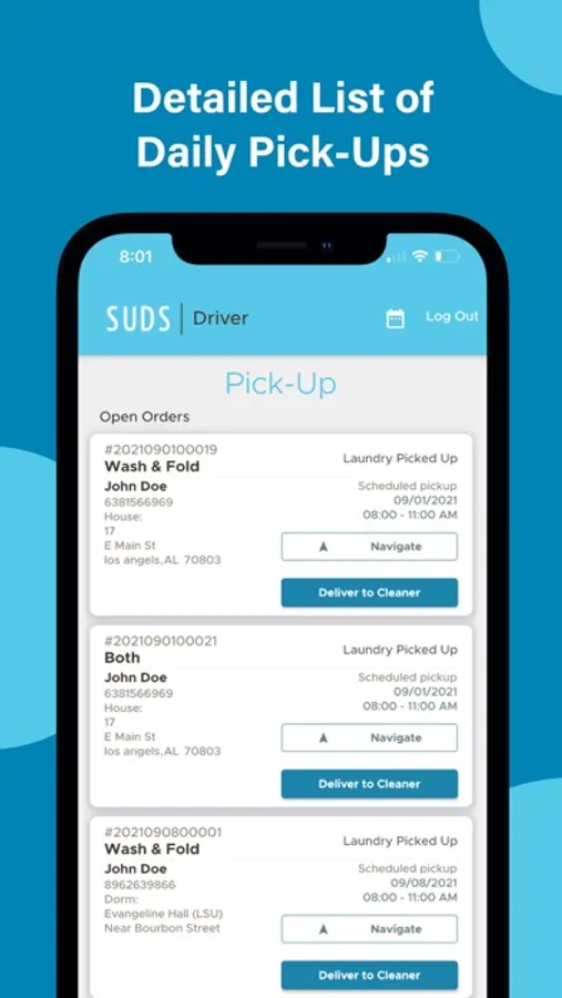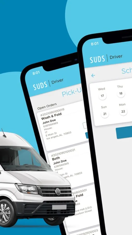 Second, schedule your pickup time and a Suds driver will collect your laundry allowing you to relax while we take a load off of you